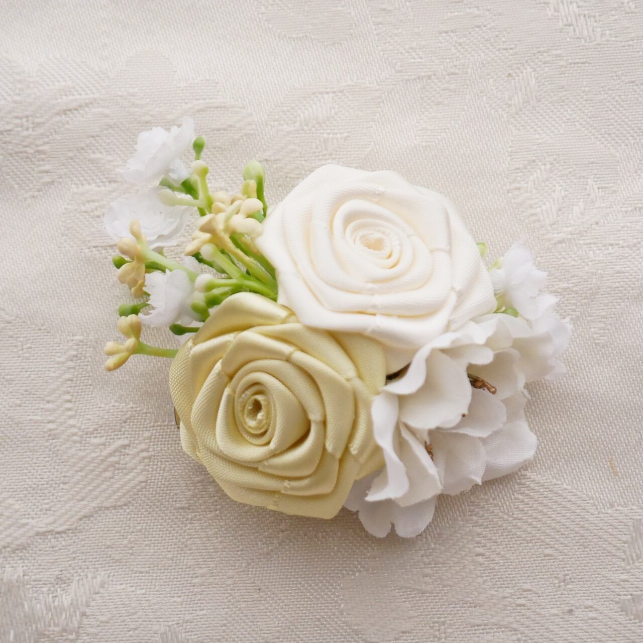 リボンローズ2WAYコサージュ SSタイプ イエローベージュ&アイボリー